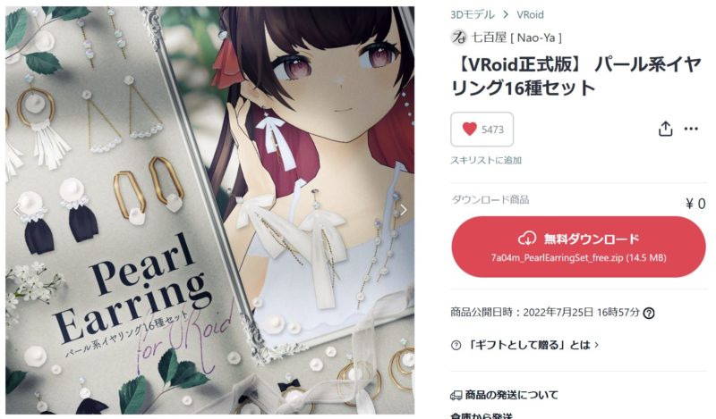 こちらも、大きめの存在感のある有料販売のイヤリングで、価格は150円です。はね毛の.vroidcustomitemの記載がありました。