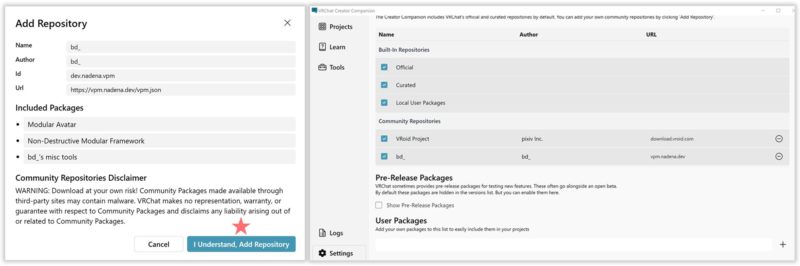 VCCが起動で来てなかったら起動して、★をクリック、”分かりました、リポジトリを追加します”と書かれているらしい💦。終わると、左の画面になります。